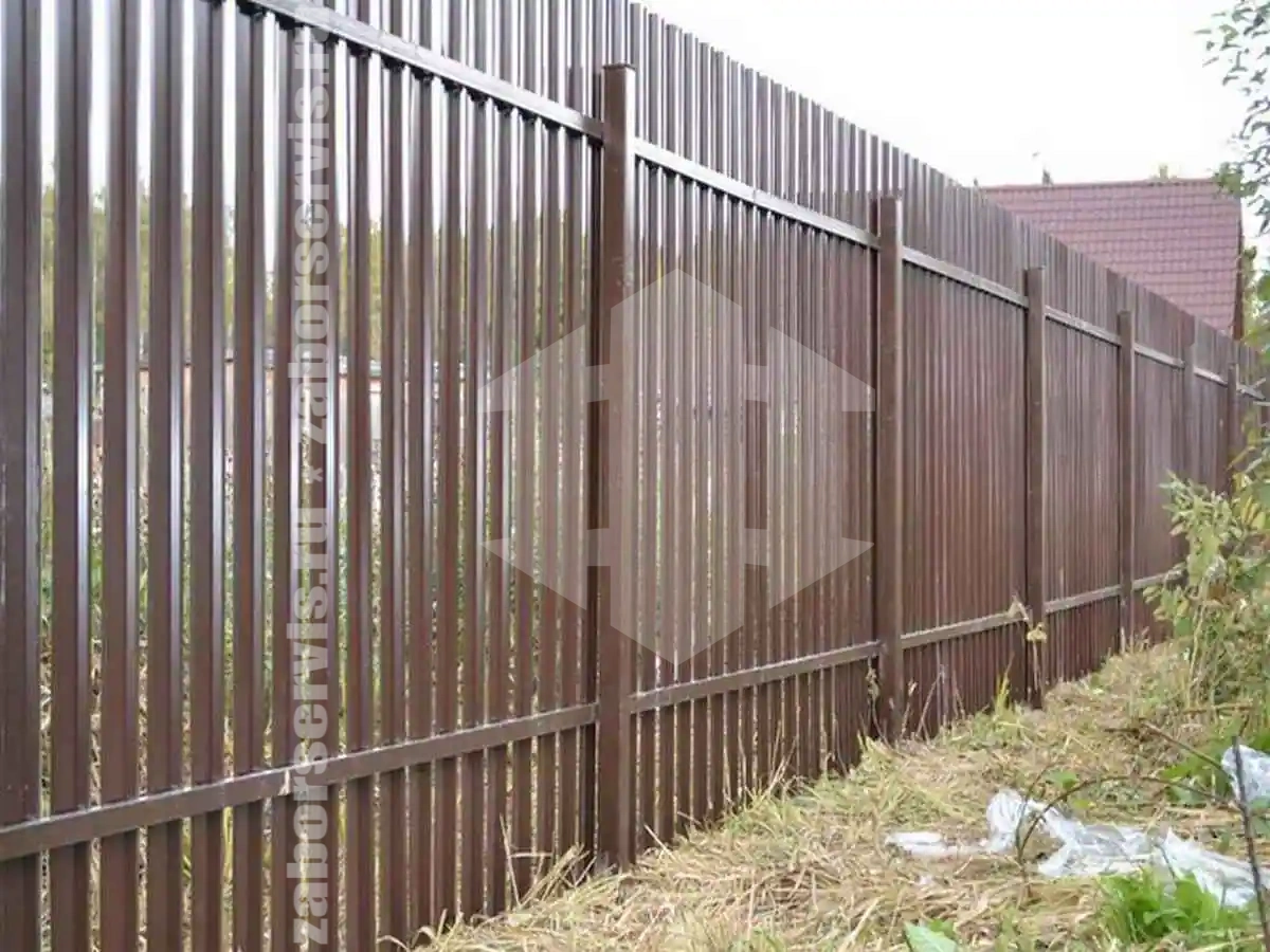 • Забор из металлического штакетника коричневый 98 метров Артикул: S33E2849